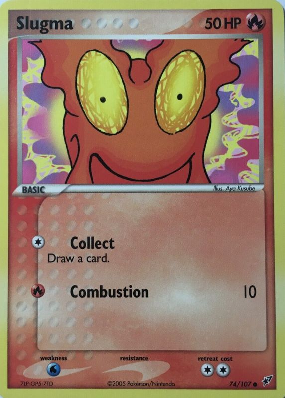 The Slugma 2005 EX: Deoxys #074/107 Base card in Raw TCG (Near Mint) condition has moved down -$0.40 (-10.0%) in the last 30 days and was last sold for $3.59 .