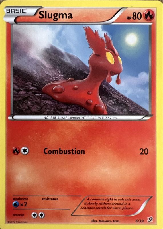 The Slugma 2013 XY: Kalos Starter Set #06/39 Base card in Raw TCG (Lightly Played) condition has not changed in price in the last 30 days and was last sold for $5.18 .