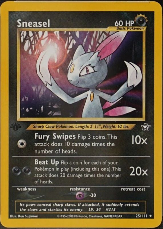 Pokémon Card Sneasel 25/111 Neo Genesis 1st Edition Rare Sugimori 302💎NM +💎