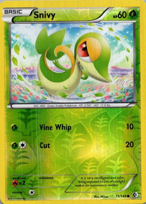 Snivy 2012 Black & White: Boundaries Crossed #011/149 Reverse Holo RAW TCG (LIGHTLY PLAYED) Price Guide