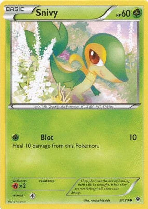 The Snivy 2016 XY: Fates Collide #005/124 Base card in Raw TCG (Lightly Played) condition has not changed in price in the last 30 days and was last sold for $0.99 .
