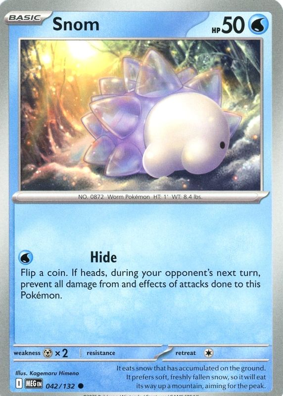 The Snom 2025 Mega Evolution #042/132 Base card in Raw TCG (Lightly Played) condition has not changed in price in the last 30 days.