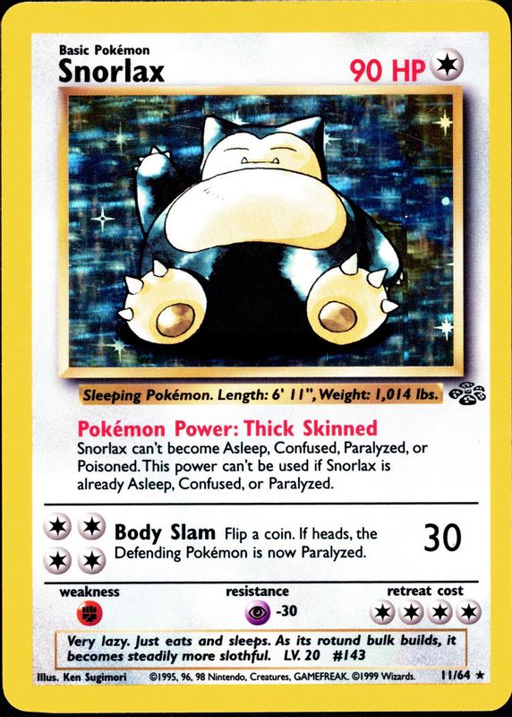 Snorlax 1999 Jungle #11/64 Unlimited Holo RAW TCG (LIGHTLY PLAYED) Price Guide