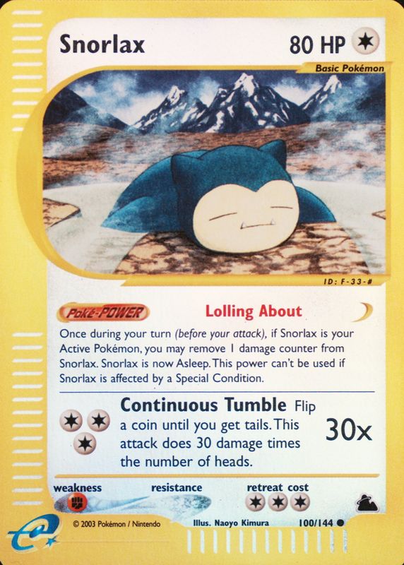 Snorlax 2003 Skyridge #100/144 Reverse Holo RAW TCG (NEAR MINT) Price Guide