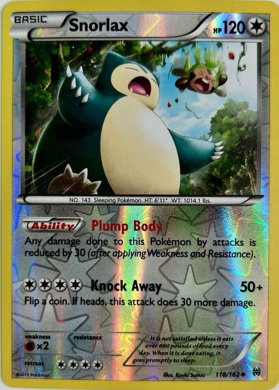 Snorlax 2015 XY: BREAKthrough #118/162 Reverse Holo RAW TCG (LIGHTLY PLAYED) Price Guide