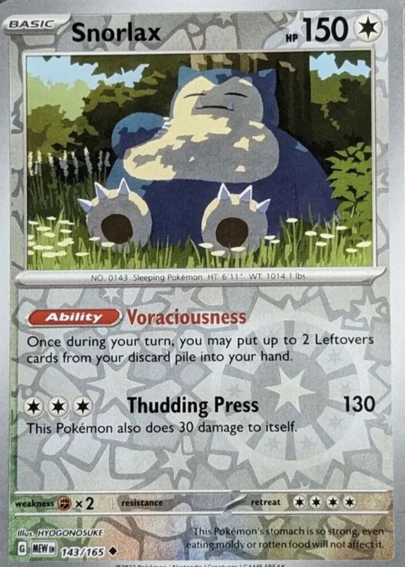 Best Prices Available For Sale of Snorlax 2023 Scarlet & Violet: 151 #143/165 Reverse Holo