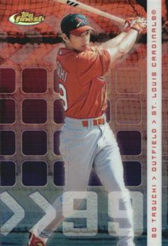 The So Taguchi 2002 Topps Finest #50 Refractor /499 Rookie card is 1 of 3 So Taguchi's card variations in the 2002 Topps Finest set being tracked by Sports Card Investor, including Base, and X-Fractor /299.