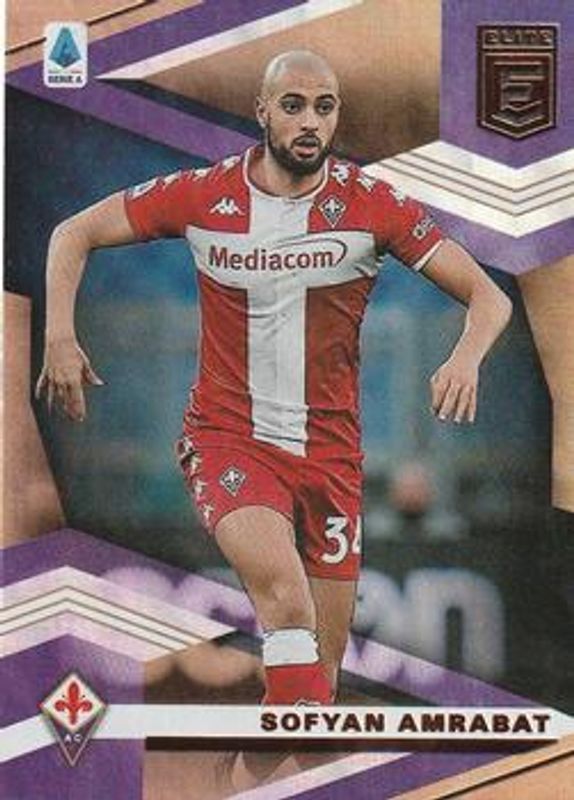 The Sofyan Amrabat 2020 Chronicles #3 Elite Serie A card is 1 of 16 Sofyan Amrabat's card variations in the 2020 Chronicles set being tracked by Sports Card Investor, including Elite Serie A Blue Circles Asia, Elite Serie A Gold Circles, Elite Serie A Gold Laser, Elite Serie A Green Circles, and Elite Serie A Purple Astro.