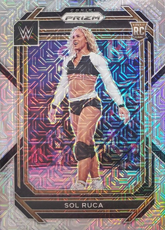 The Sol Ruca 2023 Prizm WWE #105 Mojo /25 Rookie card in Raw condition has moved up $35.00 (+15.2%) in the last 30 days and was last sold for $265.00 .
