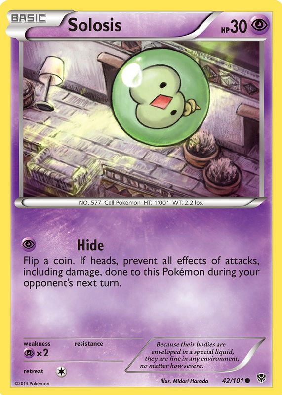 The Solosis 2013 Black & White: Plasma Blast #042/101 Base card in Raw TCG (Lightly Played) condition has not changed in price in the last 30 days and was last sold for $0.99 .