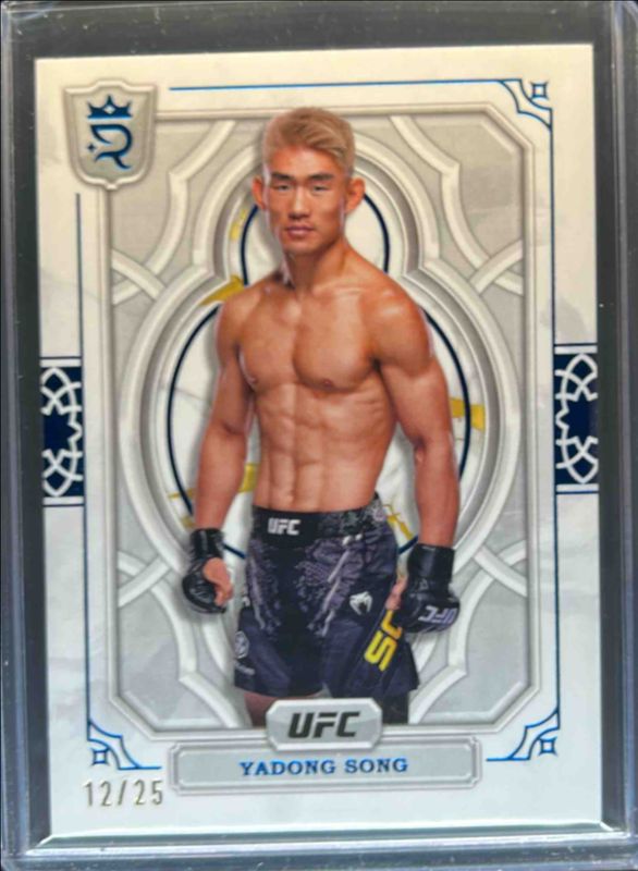 The Song Yadong 2024 Topps UFC Royalty #16 Blue /25 card is 1 of 25 Song Yadong's card variations in the 2024 Topps UFC Royalty set being tracked by Sports Card Investor, including Base /99, Purple /35, Red /15, Gold /10, and Green /5.