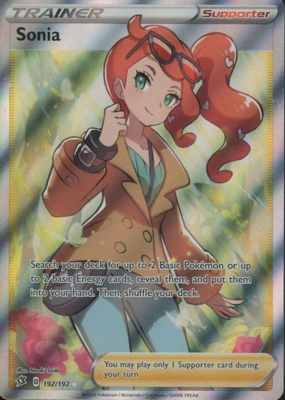 The Sonia 2020 Sword & Shield: Rebel Clash #192/192 Holo (Full Art) card in Raw TCG (Near Mint) condition has moved down -$2.25 (-11.3%) in the last 30 days and was last sold for $17.74 .