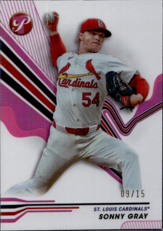 The Sonny Gray 2024 Topps Pristine #238 Pink Refractor /15 card is 1 of 43 Sonny Gray's card variations in the 2024 Topps Pristine set being tracked by Sports Card Investor, including #238 Base, #276 Base, #238 Pristine Refractor, #276 Pristine Refractor, and #276 Refractor.