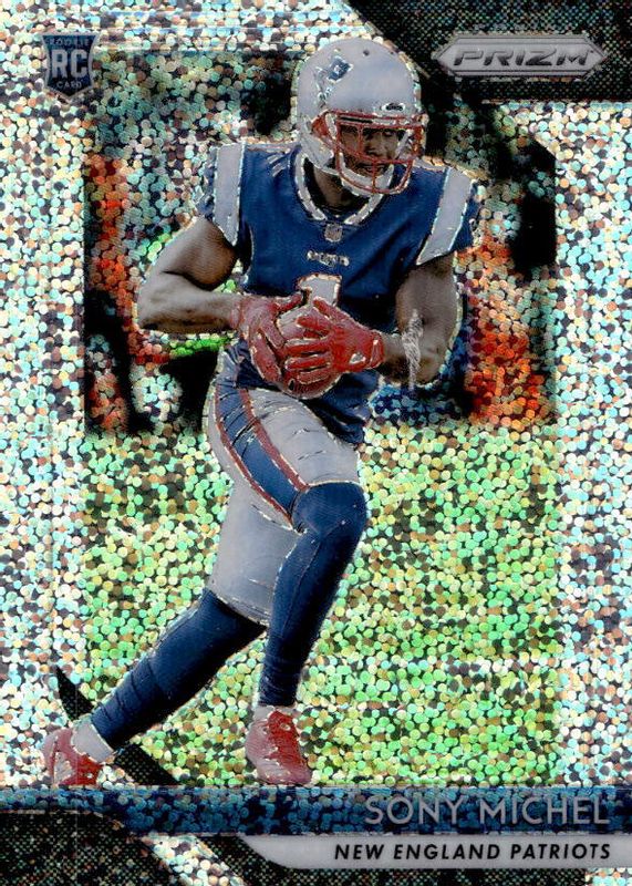 This card is 1 of 59 Sony Michel's card variations in the 2018 Prizm set being tracked by Sports Card Investor, including Base, Green, Lazer, Neon Green Pulsar, and Pink.
