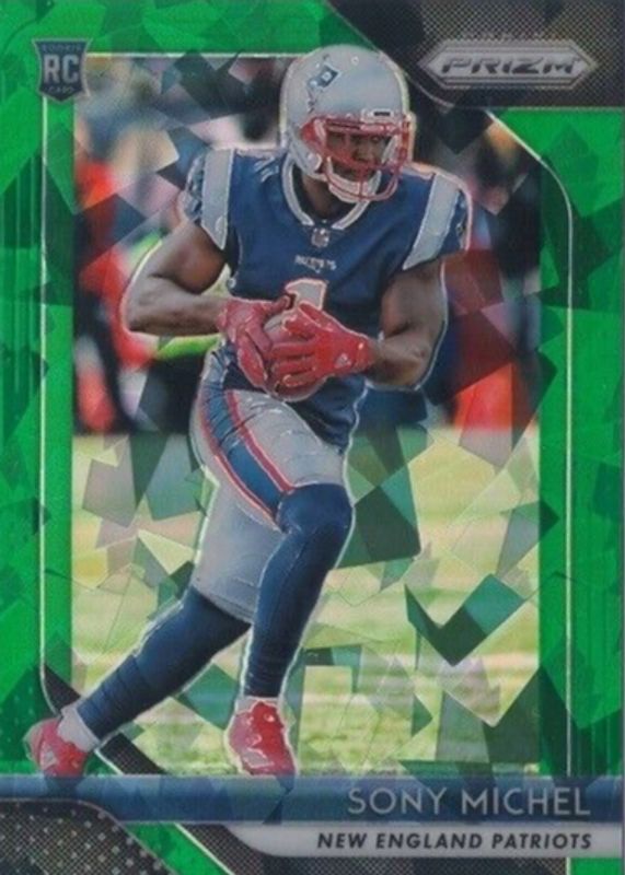 Sony Michel 2018 Prizm #211 Green Crystals /75 Rookie RAW Price Guide