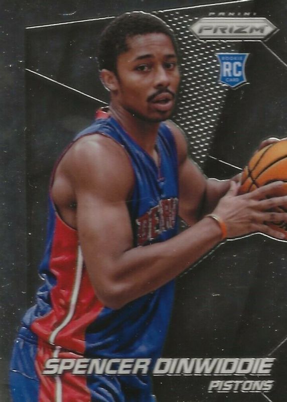 This card is 1 of 31 Spencer Dinwiddie's card variations in the 2014 Prizm set being tracked by Sports Card Investor, including Blue Green Mosaic, Blue Mojo, Blue Wave, Green, and Red White Blue Pulsar.
