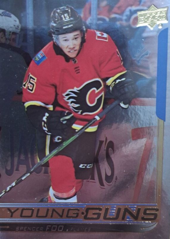 This card is 1 of 11 Spencer Foo's card variations in the 2018 Upper Deck set being tracked by Sports Card Investor, including Young Guns Base, Young Guns - Clear Cut, Young Guns - Jumbo, Young Guns - Speckled Rainbow Foil, and Young Guns - UD Exclusives /100.