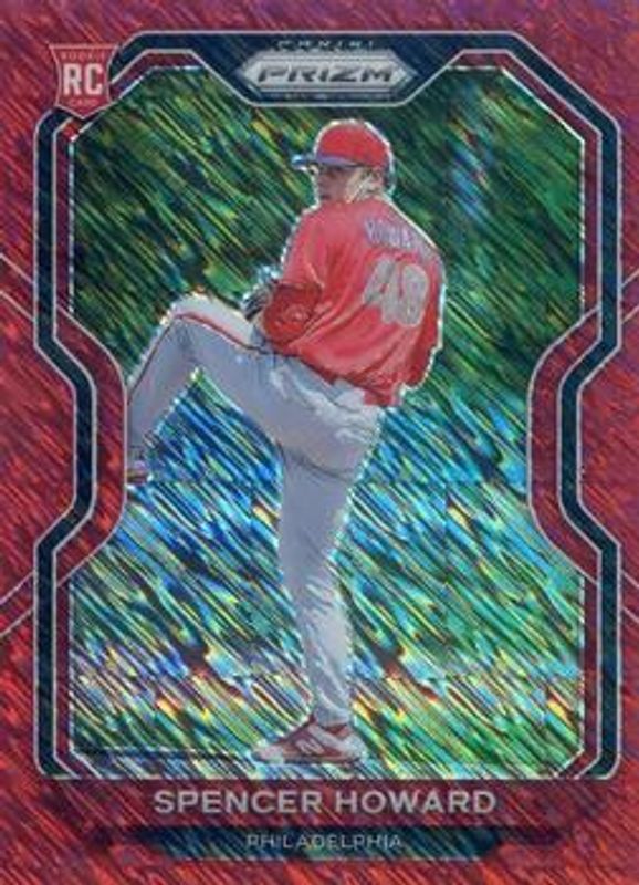 The Spencer Howard 2021 Prizm #66 Red Shimmer /7 Rookie card is 1 of 69 Spencer Howard's card variations in the 2021 Prizm set being tracked by Sports Card Investor, including Base, Blue, Blue Velocity, Carolina Blue, and Cosmic Haze.