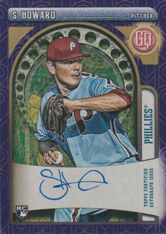 The Spencer Howard 2021 Topps Gypsy Queen #GQA-SH Autographs - Indigo /150 Rookie card is 1 of 23 Spencer Howard's card variations in the 2021 Topps Gypsy Queen set being tracked by Sports Card Investor, including Base, Bazooka Back, Green, Missing Nameplate, and Team Script Font Swap.