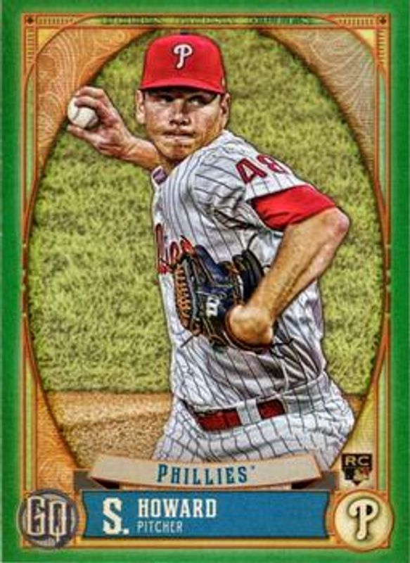 The Spencer Howard 2021 Topps Gypsy Queen #231 Green Rookie card is 1 of 23 Spencer Howard's card variations in the 2021 Topps Gypsy Queen set being tracked by Sports Card Investor, including Base, Bazooka Back, Missing Nameplate, Team Script Font Swap, and Indigo /250.