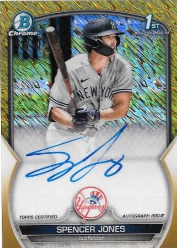 Auctions Ending Soon for Spencer Jones 2023 Bowman #CPA-SJ Chrome Prospect Auto - Gold Shimmer Refractor /50 (1st) RAW