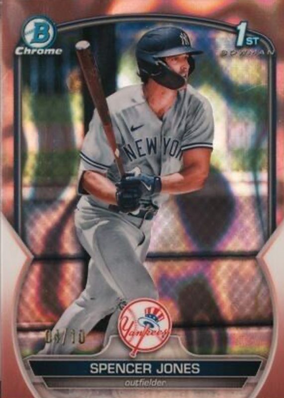 Spencer Jones 2023 Bowman #BCP-139 Chrome Prospects - Rose Gold Lava Refractor /10 (1st) RAW Price Guide