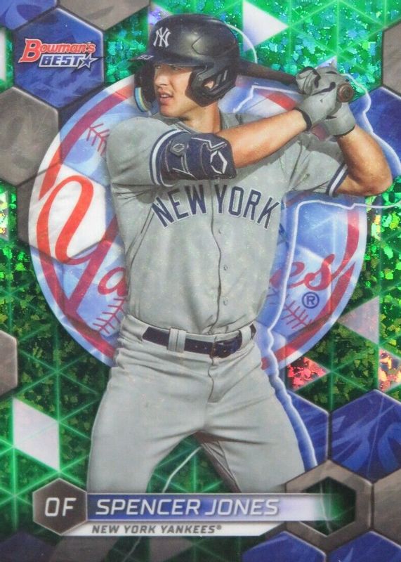 Spencer Jones 2023 Bowman's Best Green Mini Diamond Refractor RC /99. Yankees