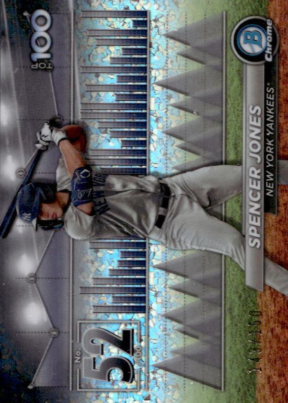The Spencer Jones 2024 Bowman #BTP-52 Bowman Scouts' Top 100 - Mini-Diamond Refractor /150 card in Raw condition has not changed in price in the last 30 days and was last sold for $3.25 .
