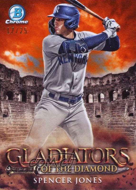 Best Prices Available For Sale of Spencer Jones 2024 Bowman #GOTD-17 Gladiators of the Diamond - Orange Refractor /25
