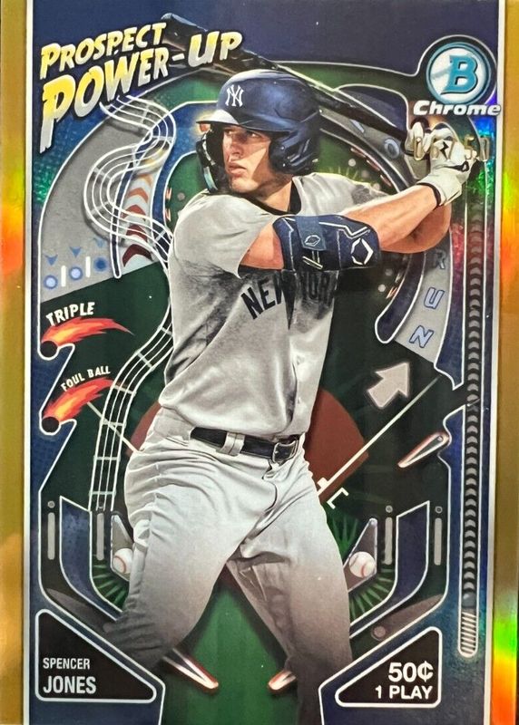 2024 Bowman Chrome Spencer Jones Prospect Power Up Gold Refractor #/50 NYY