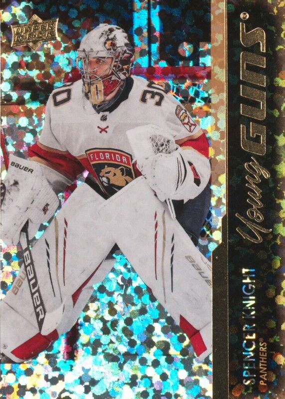 The Spencer Knight 2021 Upper Deck #223 Young Guns - Speckled Rainbow Foil Rookie card in Raw condition has not changed in price in the last 30 days and was last sold for $83.50 .