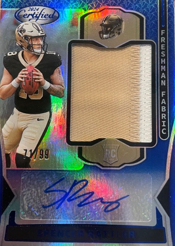 Spencer Rattler 2024 Certified #FMS-SRR Freshman Fabric Signatures - Mirror Blue /99 Rookie RAW Price Guide