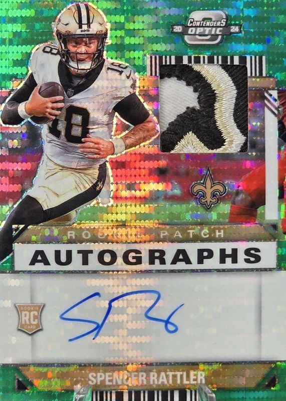 Spencer Rattler 2024 Contenders Optic #RPA-SRR Rookie Patch Auto - Green Pulsar /15 RAW Price Guide