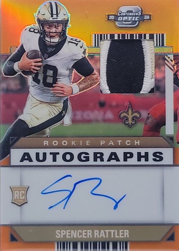 2024 Panini Contenders Optic Spencer Rattler RC Patch Auto Orange 13/25 Saints