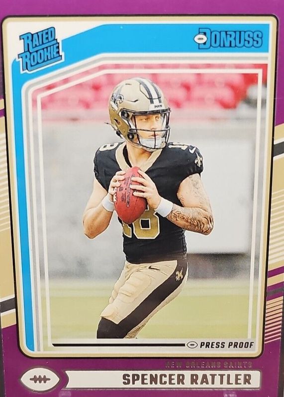 2024 Donruss #359 Spencer Rattler RC PURPLE PRESS PROOF Saints Rated Rookie Card