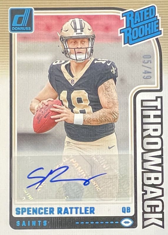 2024 Donruss Spencer Rattler - Rated Rookie Throwback Auto /49 - Saints (RC)