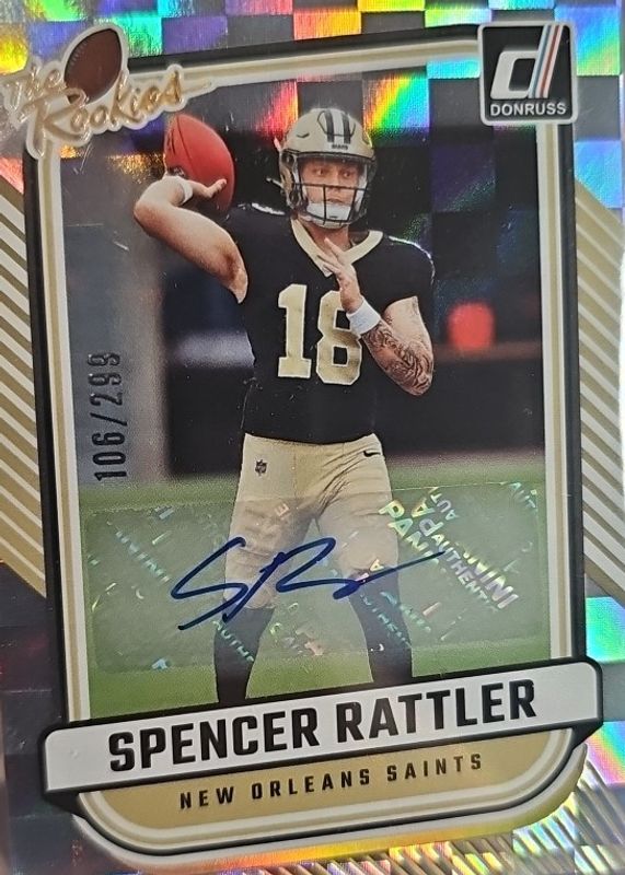2024 Panini Donruss Spencer Rattler THE ROOKIES RC Auto #'D 83/299 #TR-24 SAINTS