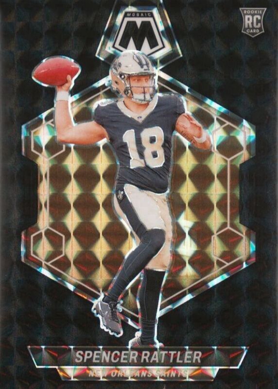 This card is 1 of 89 Spencer Rattler's card variations in the 2024 Mosaic set being tracked by Sports Card Investor, including Base, Green, Mosaic, No Huddle, and Pink Camo.