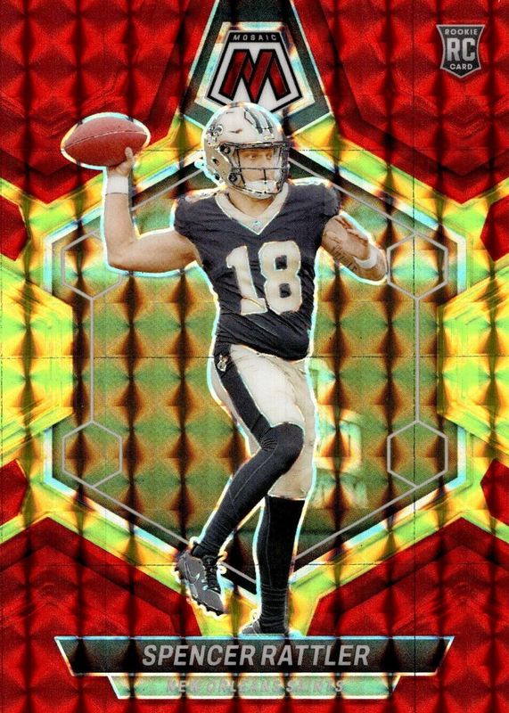 The Spencer Rattler 2024 Mosaic #393 Choice Fusion Red & Yellow /80 Rookie card in Raw condition has not changed in price in the last 30 days and was last sold for $10.50 .