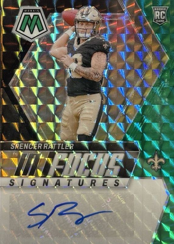 Best Prices Available For Sale of Spencer Rattler 2024 Mosaic #IF-SRR In Focus Signatures - Choice Fusion Green & Black /25