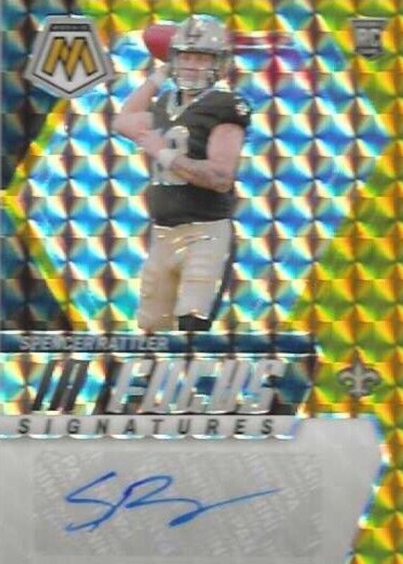 The Spencer Rattler 2024 Mosaic #IF-SRR In Focus Signatures - Gold /10 Rookie card in Raw condition has not changed in price in the last 30 days and was last sold for $36.00 .