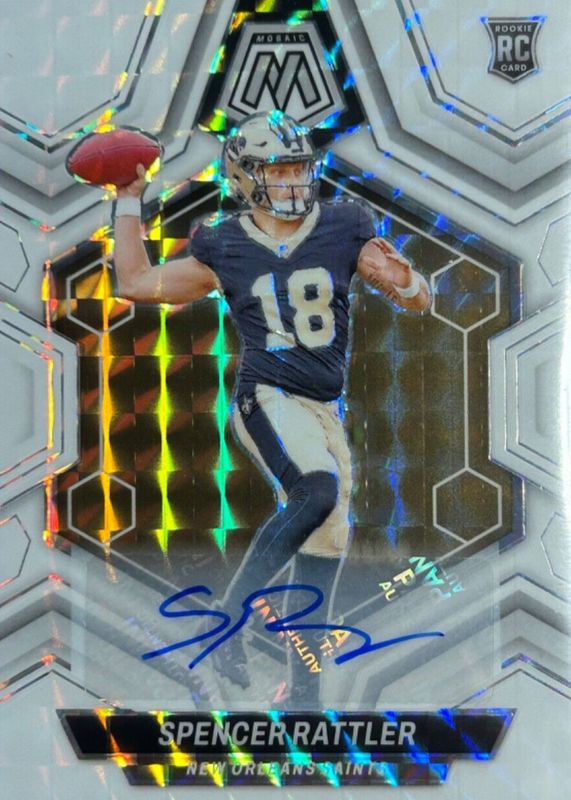 2024 PANINI MOSAIC SILVER PRIZM SPENCER RATTLER SAINTS AUTO RC SP ROOKIE CARD