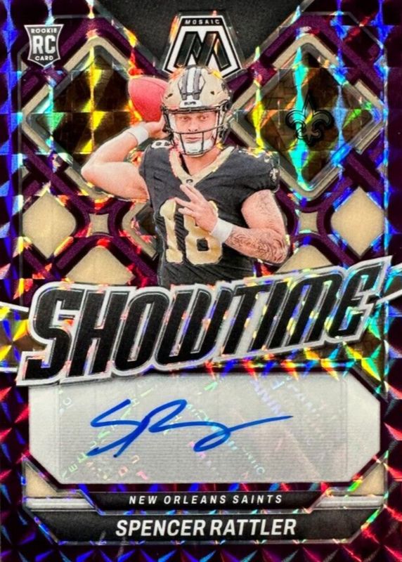 2024 Panini Mosaic Spencer Rattler RC Showtime Purple Signatures Saints #5/49 SP