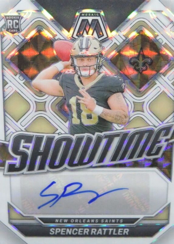 2024 PANINI MOSAIC SPENCER RATTLER SHOWTIME WHITE RC AUTO /25 SAINTS SM4