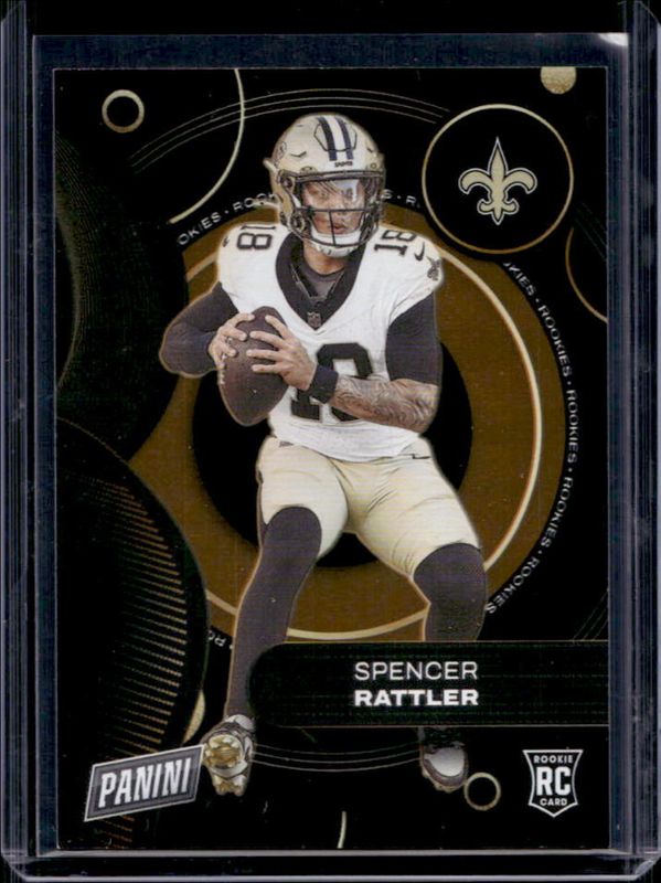 The Spencer Rattler 2024 Panini Player of the Day #RC15 Rookies Orange /199 card is 1 of 8 Spencer Rattler's card variations in the 2024 Panini Player of the Day set being tracked by Sports Card Investor, including Rookies Red /99, Rookies Blue /50, Rookies Purple /25, Rookies Gold /10, and Rookies Green /5.