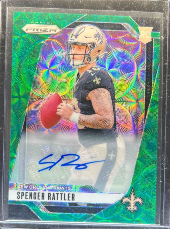 The Spencer Rattler 2024 Prizm #388 Base Autographs - Green Scope /75 Rookie card is 1 of 121 Spencer Rattler's card variations in the 2024 Prizm set being tracked by Sports Card Investor, including Base, Choice Blue Yellow Green, Choice Silver, Disco, and Green.