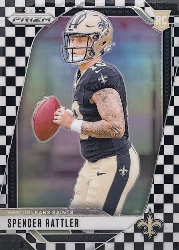2024 Panini Prizm Spencer Rattler BLACK & WHITE CHECKER #388 Rookie RC Saints
