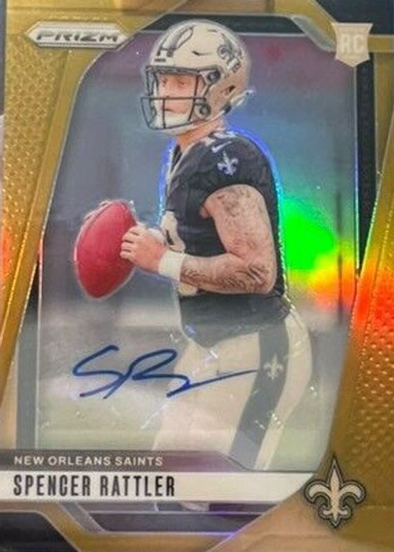 2024 Panini Prizm Spencer Rattler Gold Rookie 6/10 Auto New Orleans Saints RC