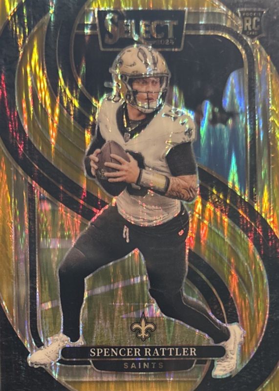 The Spencer Rattler 2024 Select #130 Premier Level Gold Shock /10 Rookie card in Raw condition has not changed in price in the last 30 days and was last sold for $118.50 .