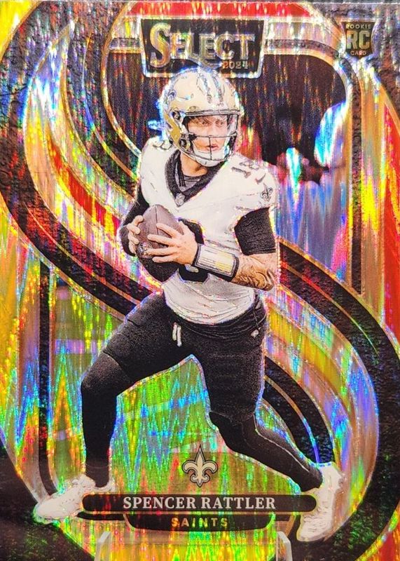 2024 Select Spencer Rattler Premier RC Red and Yellow Prizm Shock #130 Saints